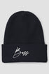 Cosy BOSS beanie. The style in ribbed knit is made from 100% recycled polyester and has a large embroidered signature logo.
